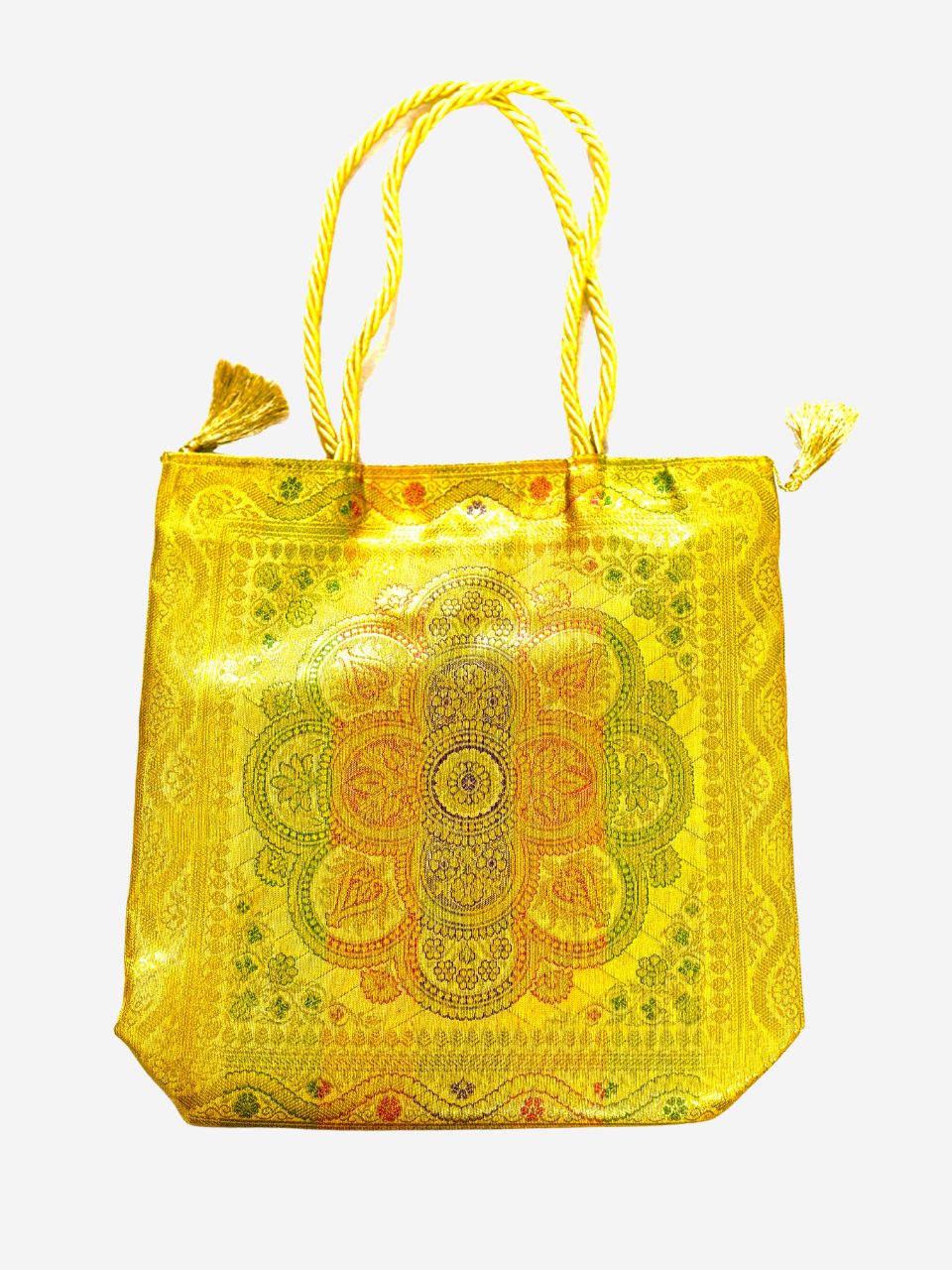 Golden Banarasi Silk Medium Hand bag