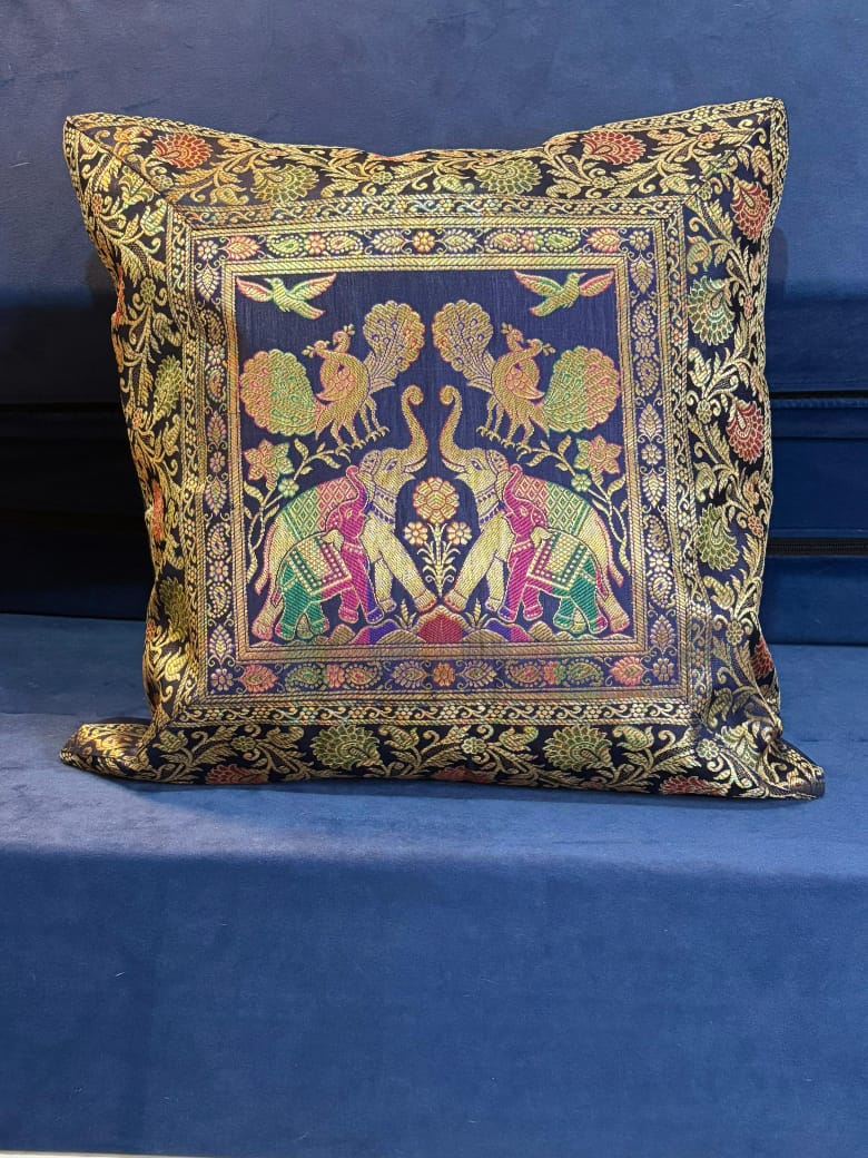 - Dress up your home with our luxurious cushion covers in unique printed design. The Banarasi Silk Cushion Cover comes in 40 cm x 40 cm perfect for any room in your house
