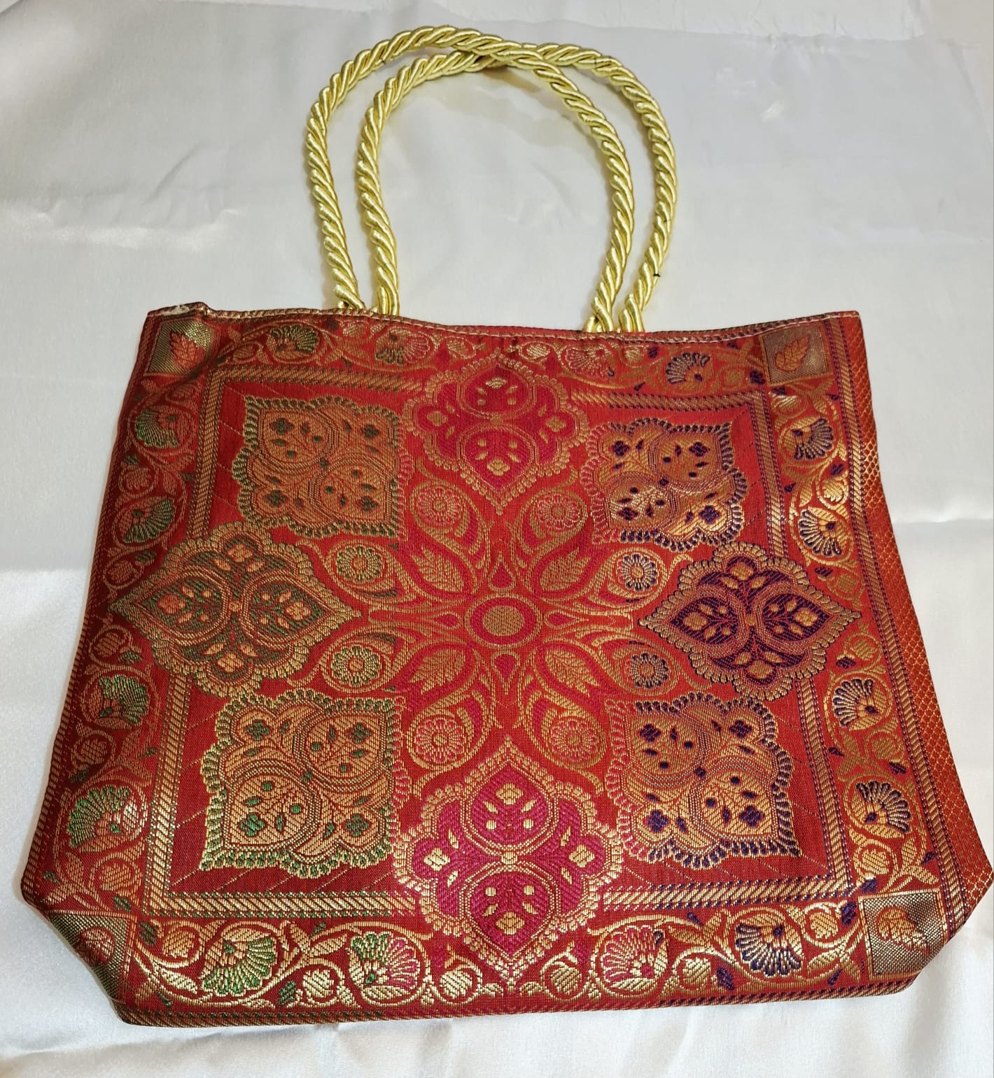 Red Peacock Banarasi Silk Small Hand bag